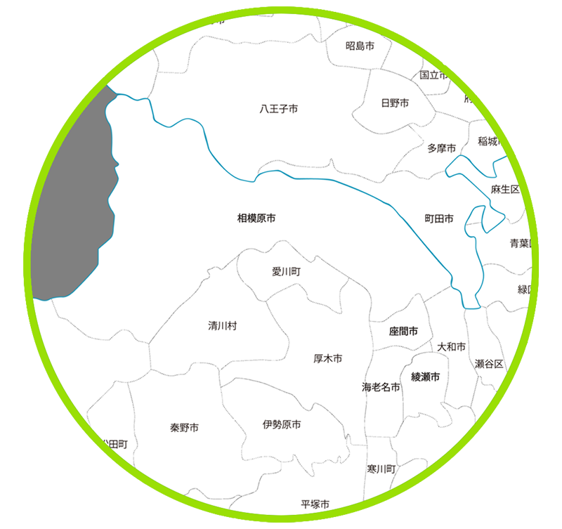 往療は、自宅事務所を中心に相模原市や海老名市など半径約16キロに対応しておりますので、患者様・そのご家族様も安心してお問い合わせください。また、その他周辺エリアのご対応につきましてもお気軽にご相談ください。